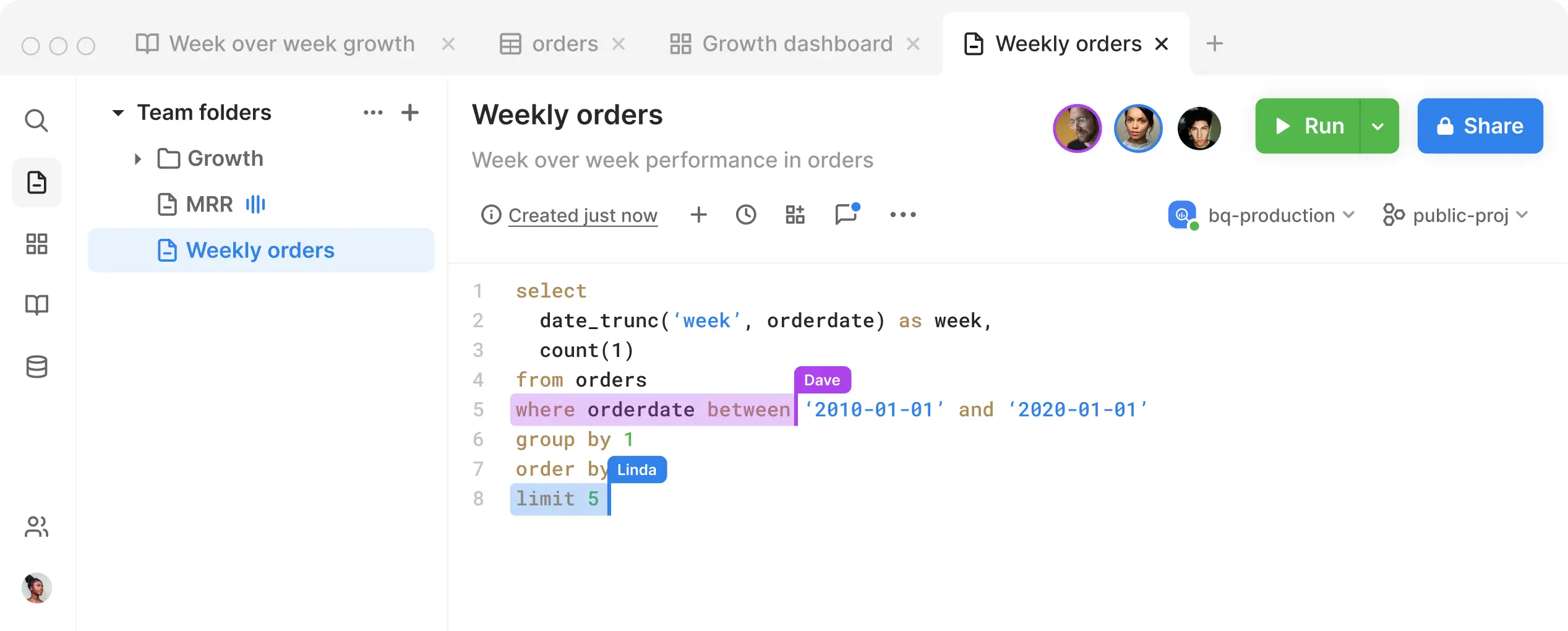 Imagine: if everyone on your team used their own SQL editor, how would they share their work? How can they collaborate on the queries? And what happens to the queries when people move on to another job?